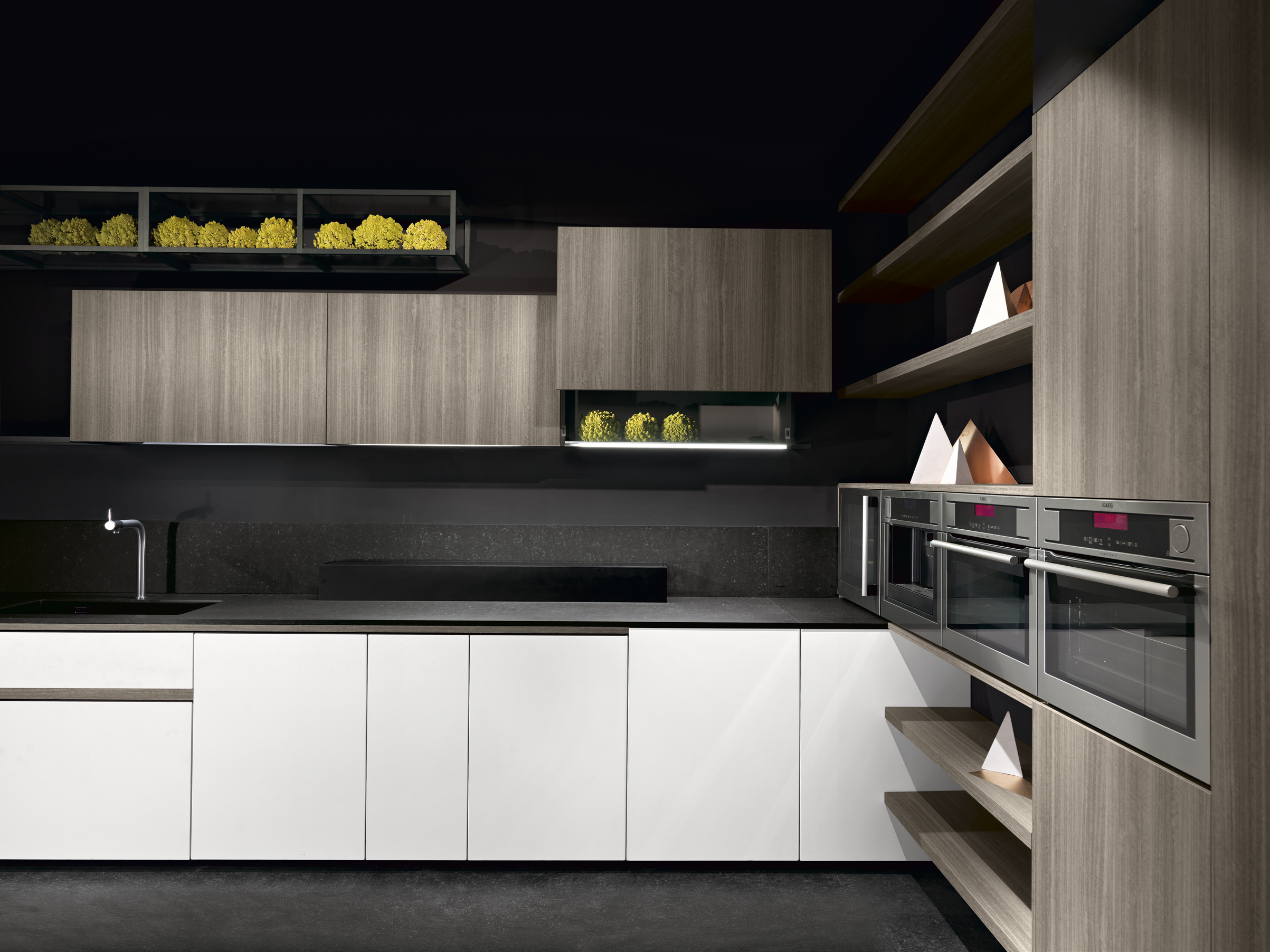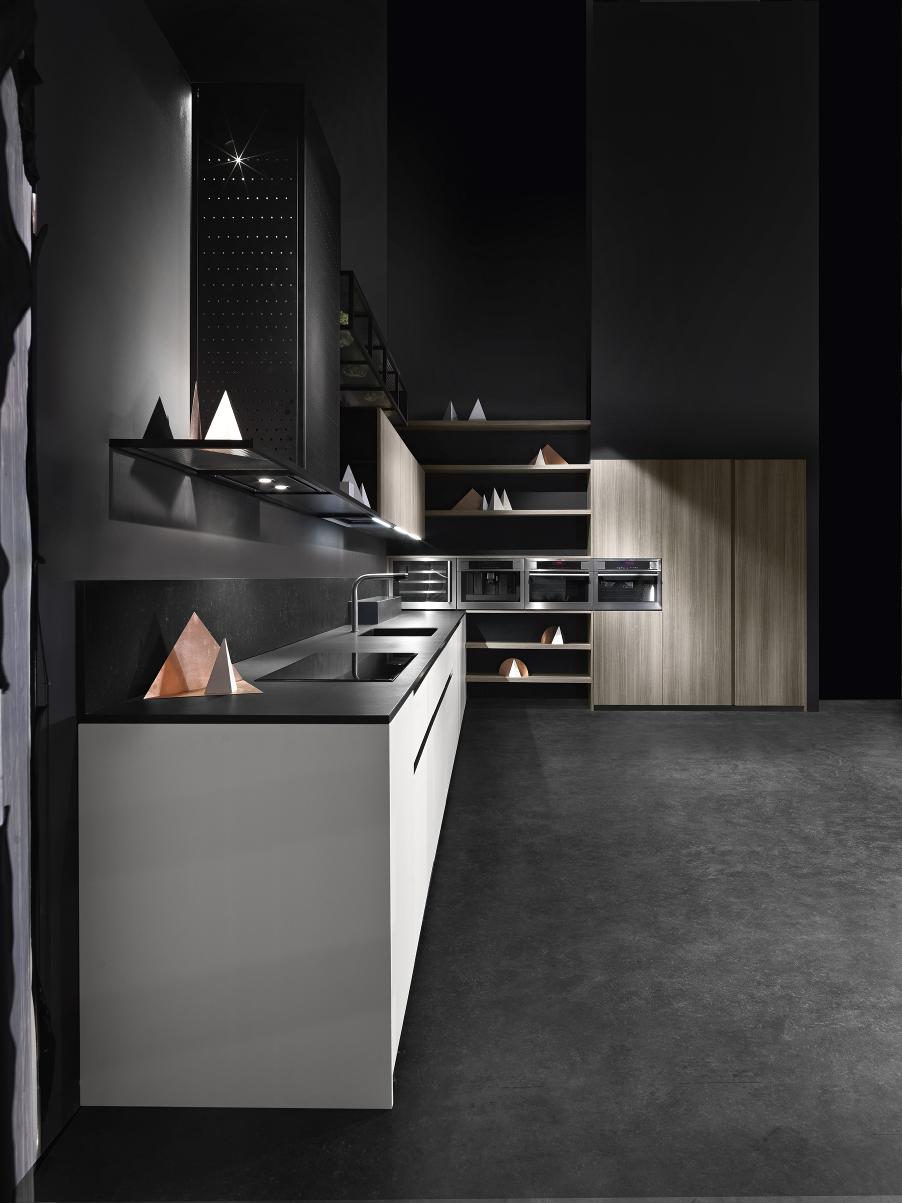Sleek and cosmopolitan, Bluna is perfect for staging elaborate dinners and equally well-suited to eating leftover Chinese from the container while standing at the sink. The mark of true quality is that it somehow elevates the spirit with every usage…no matter how adx. With its light-absorbing textures and soft, dusky palette, Bluna brings a certain luxuriant hush to the kitchen.